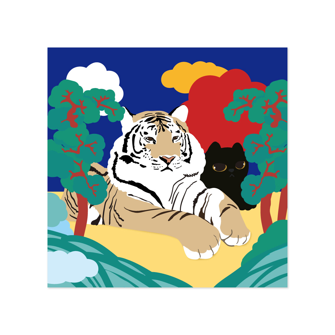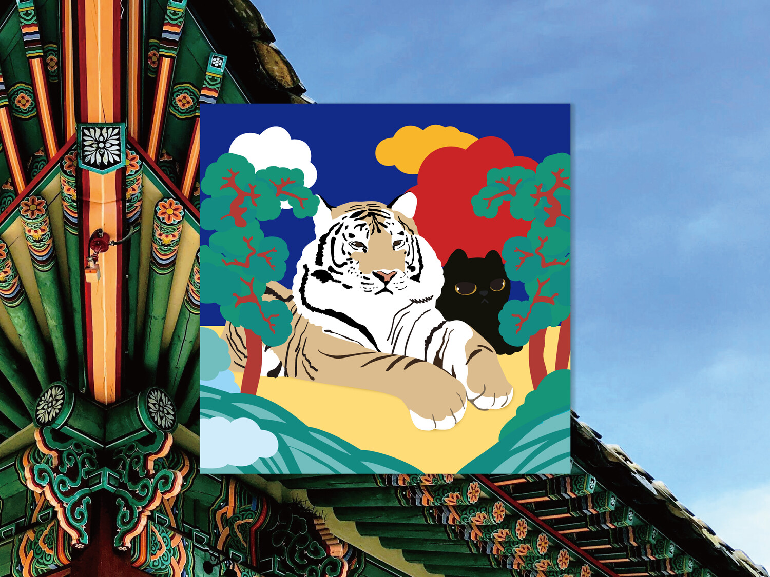 한국적인 미美와 위엄있는 자연과 호랑이가 살아있는 그림 고양이와 화호도 입니다.