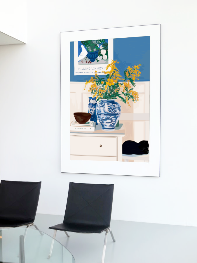 절제된 블루의 색감이 잘 풀어진 이 그림은 세련되면서도 디자인적입니다.