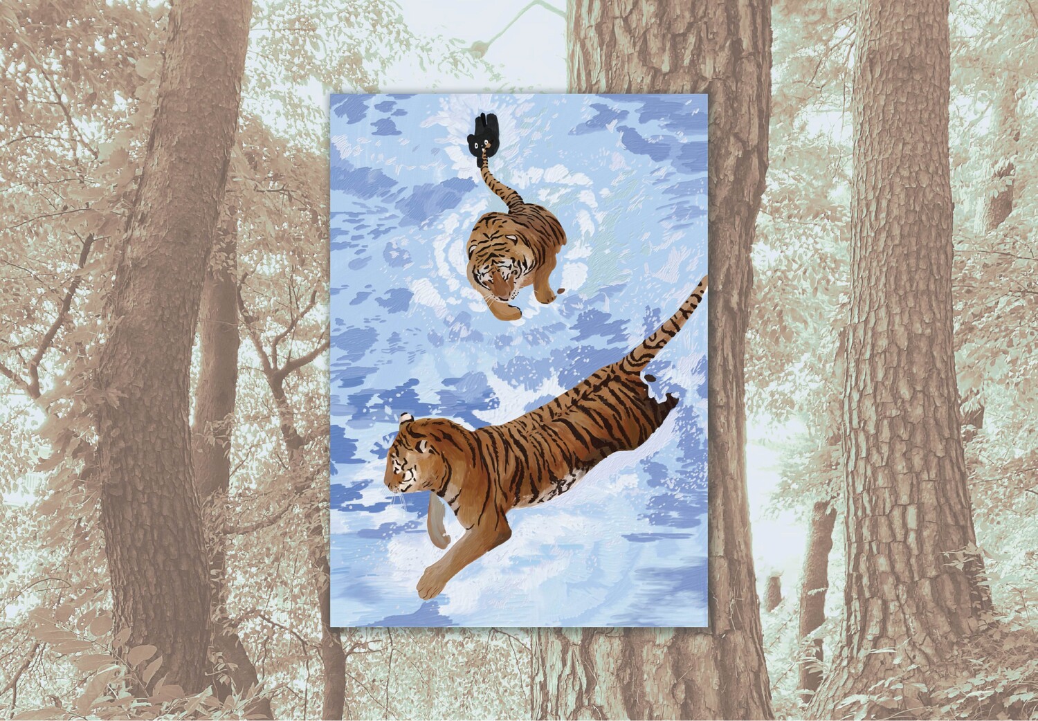 호랑이 꼬리를 잡고 따라오는 고양이의 모습까지 귀여우면서도 멋진 Tiger attack 그림을 소개합니다 :)