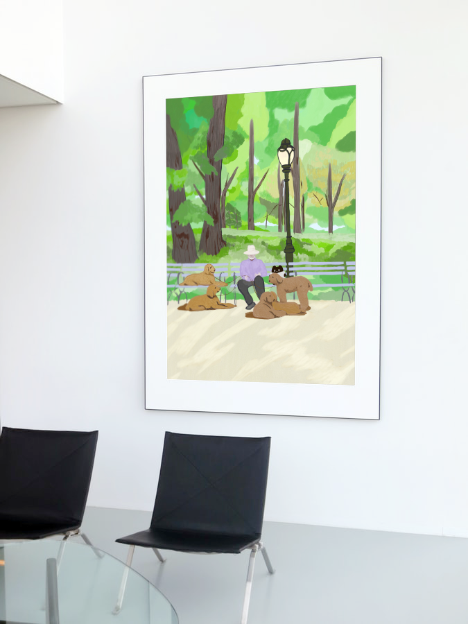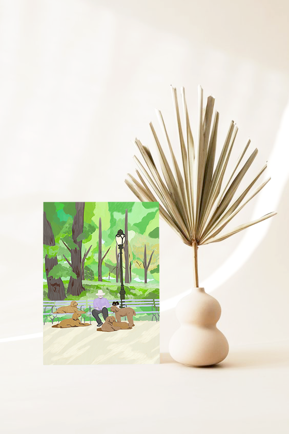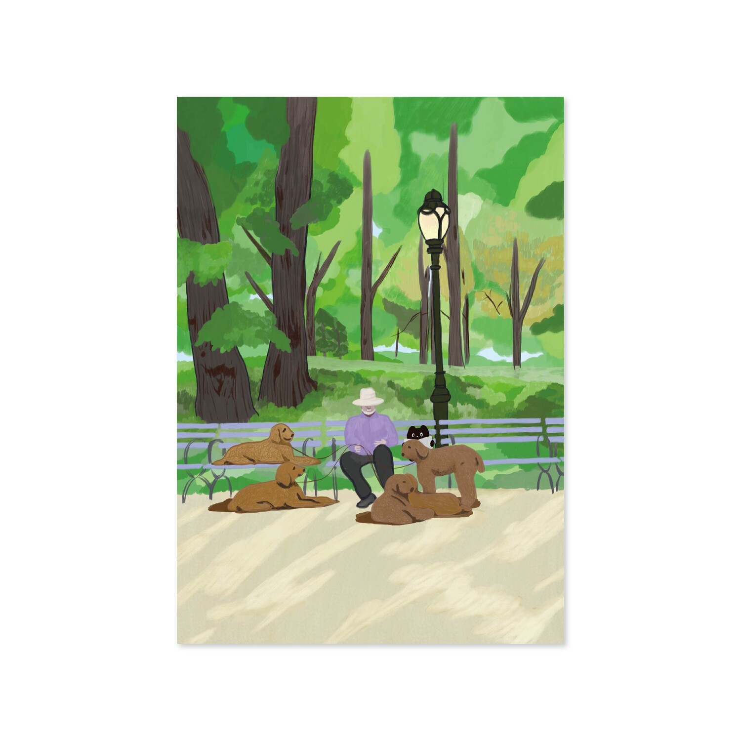 주말 오후의 한가한 할아버지와 네마리의 댕댕이를 그린 "PARK"입니다.