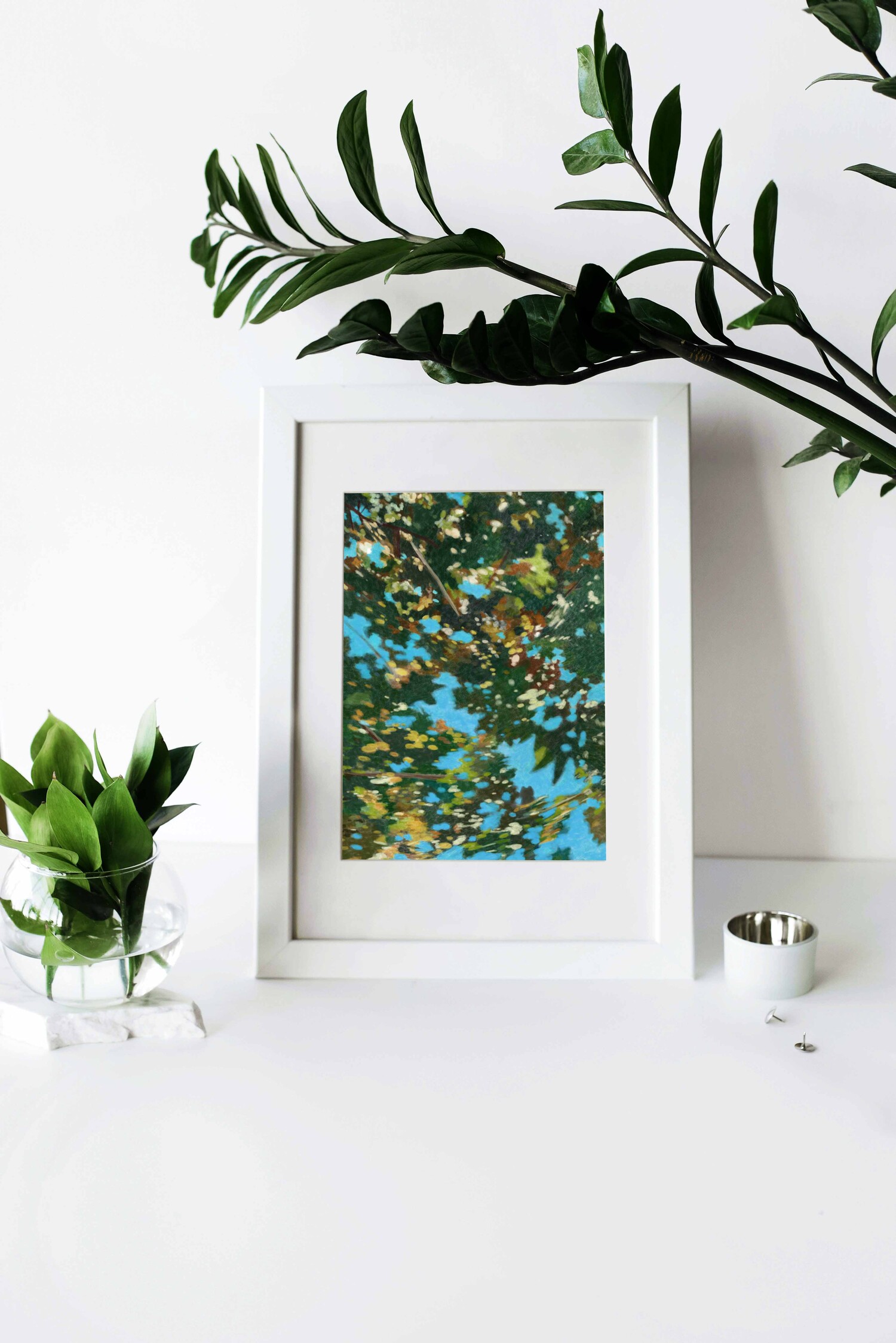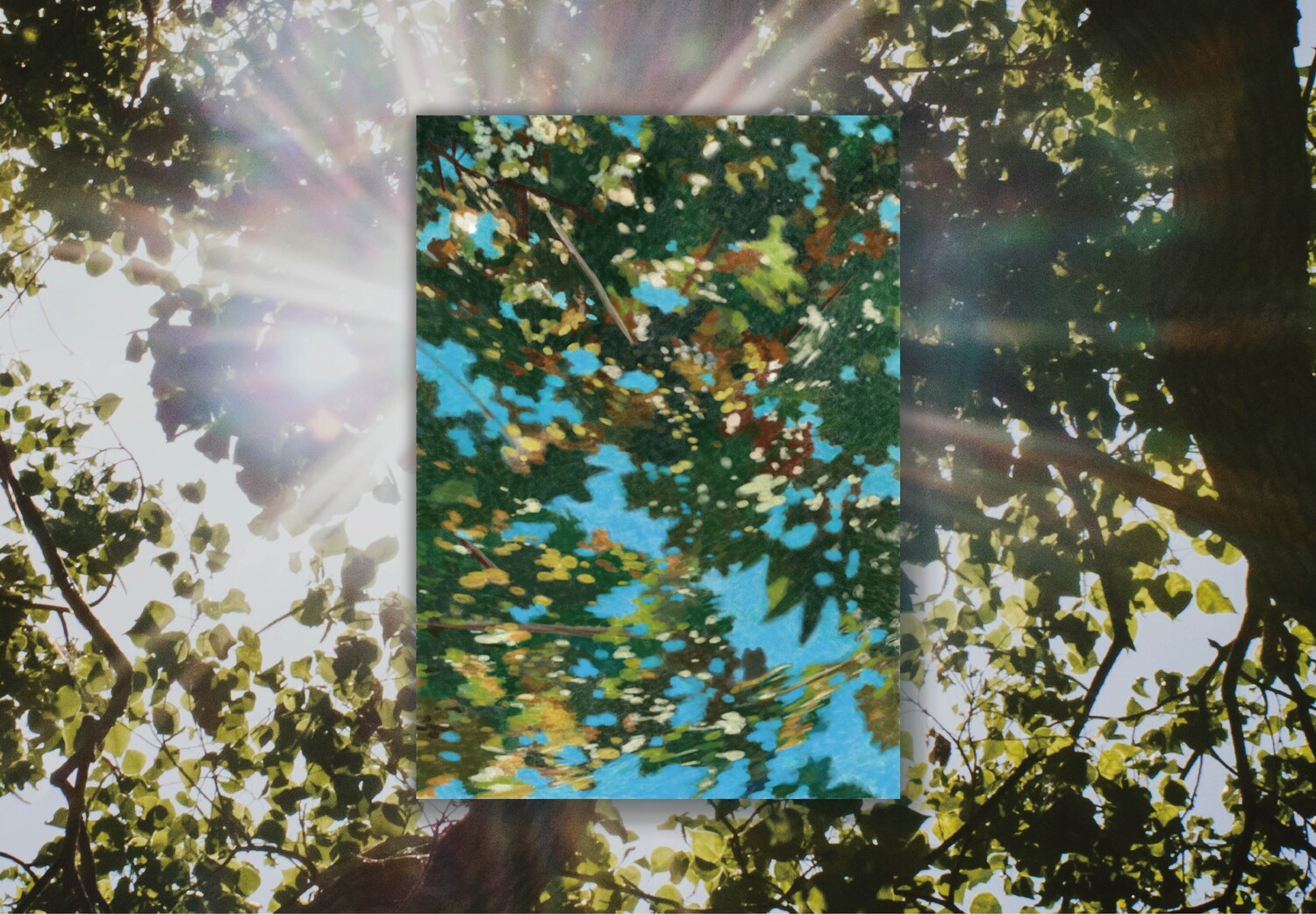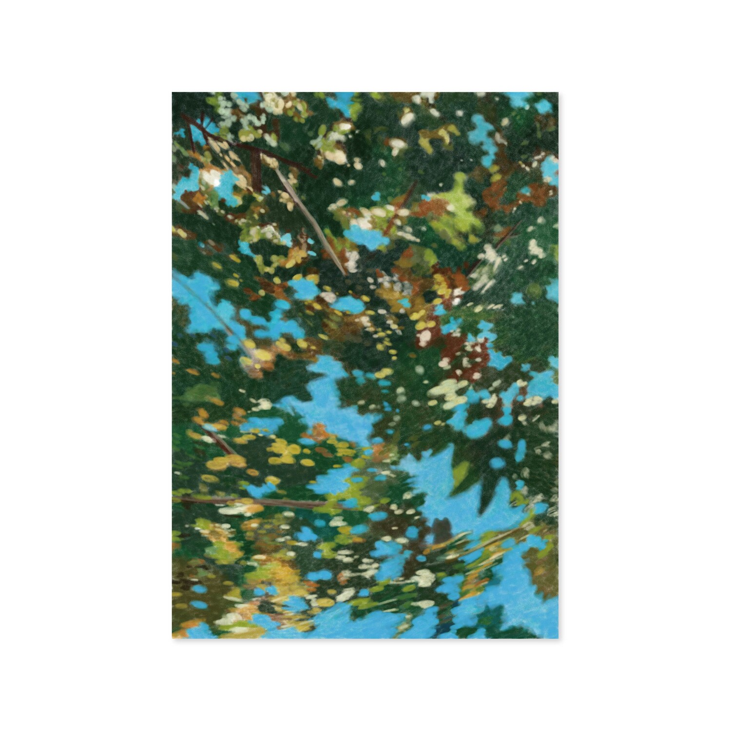 나무 사이로 보이는 하늘과 아름다운 빛이 따스한 느낌을 주는 그림 "SKY THROUGH TREE" 아트 엽서입니다.