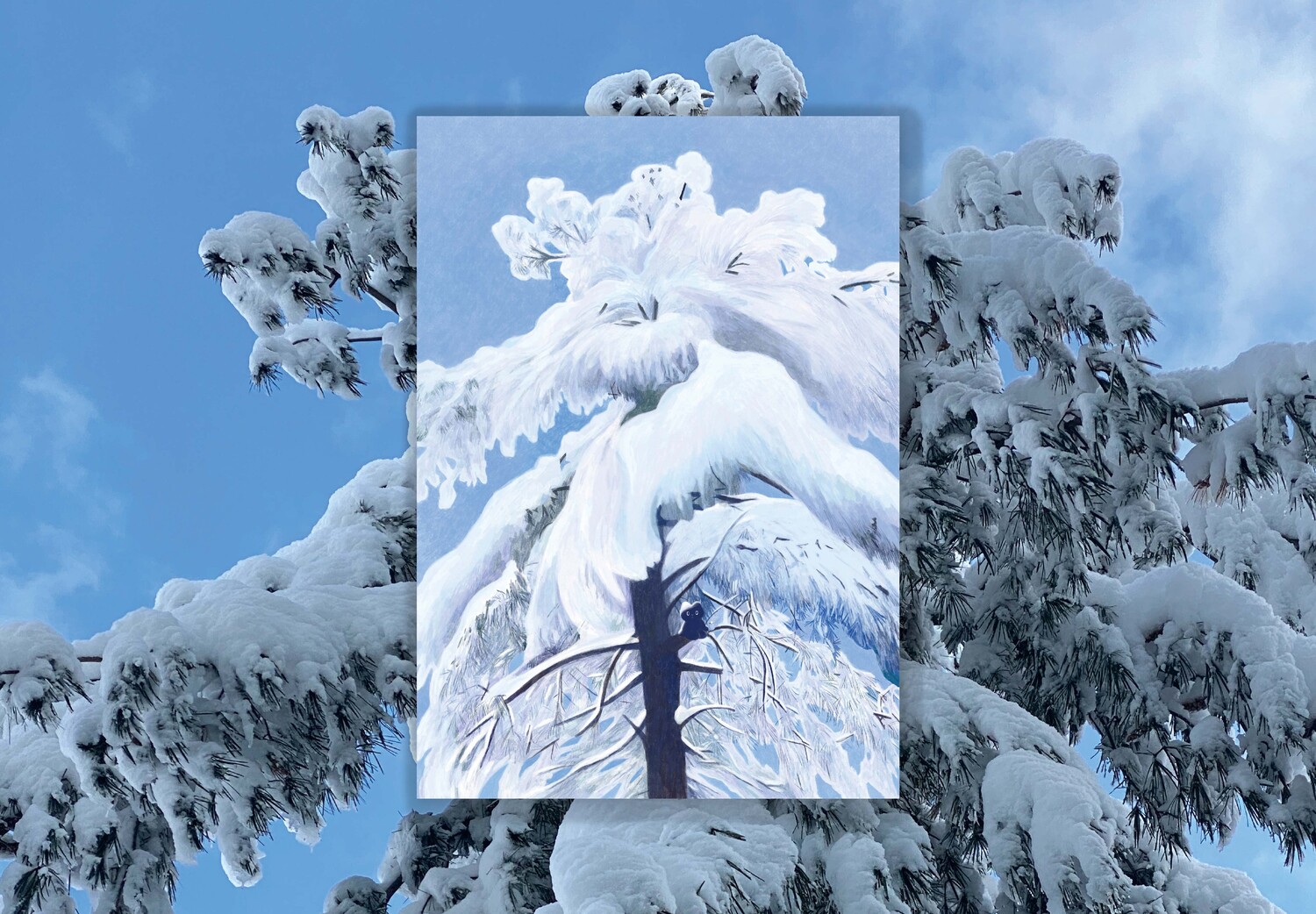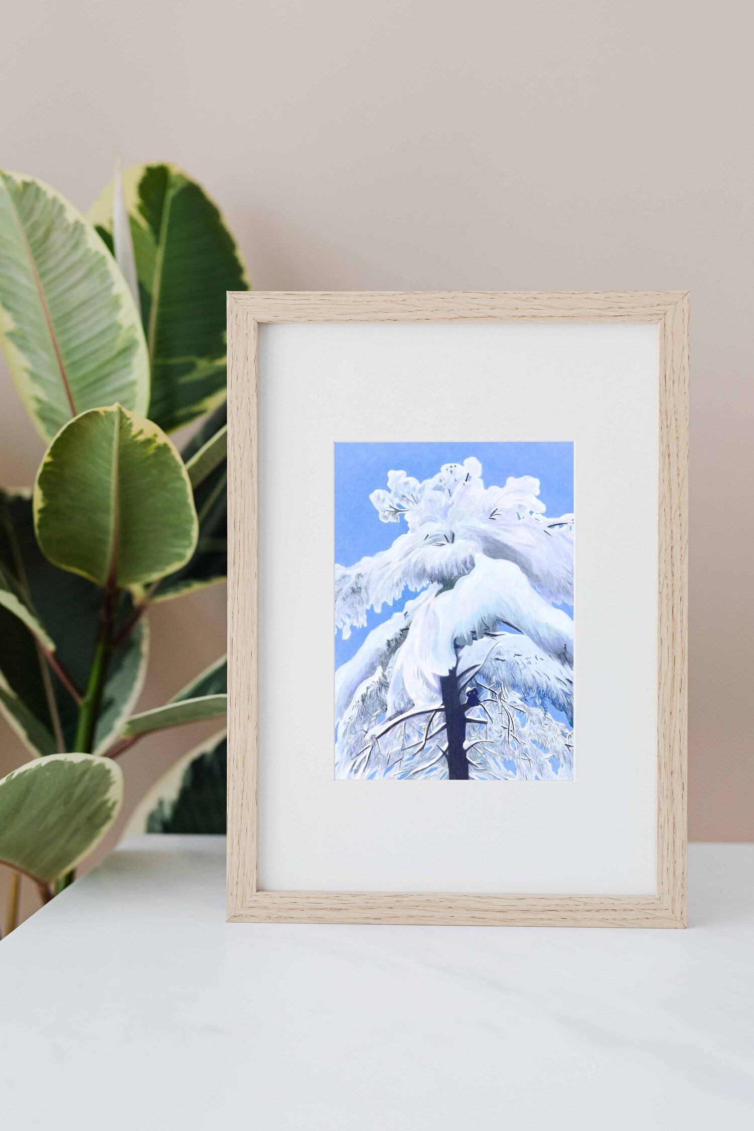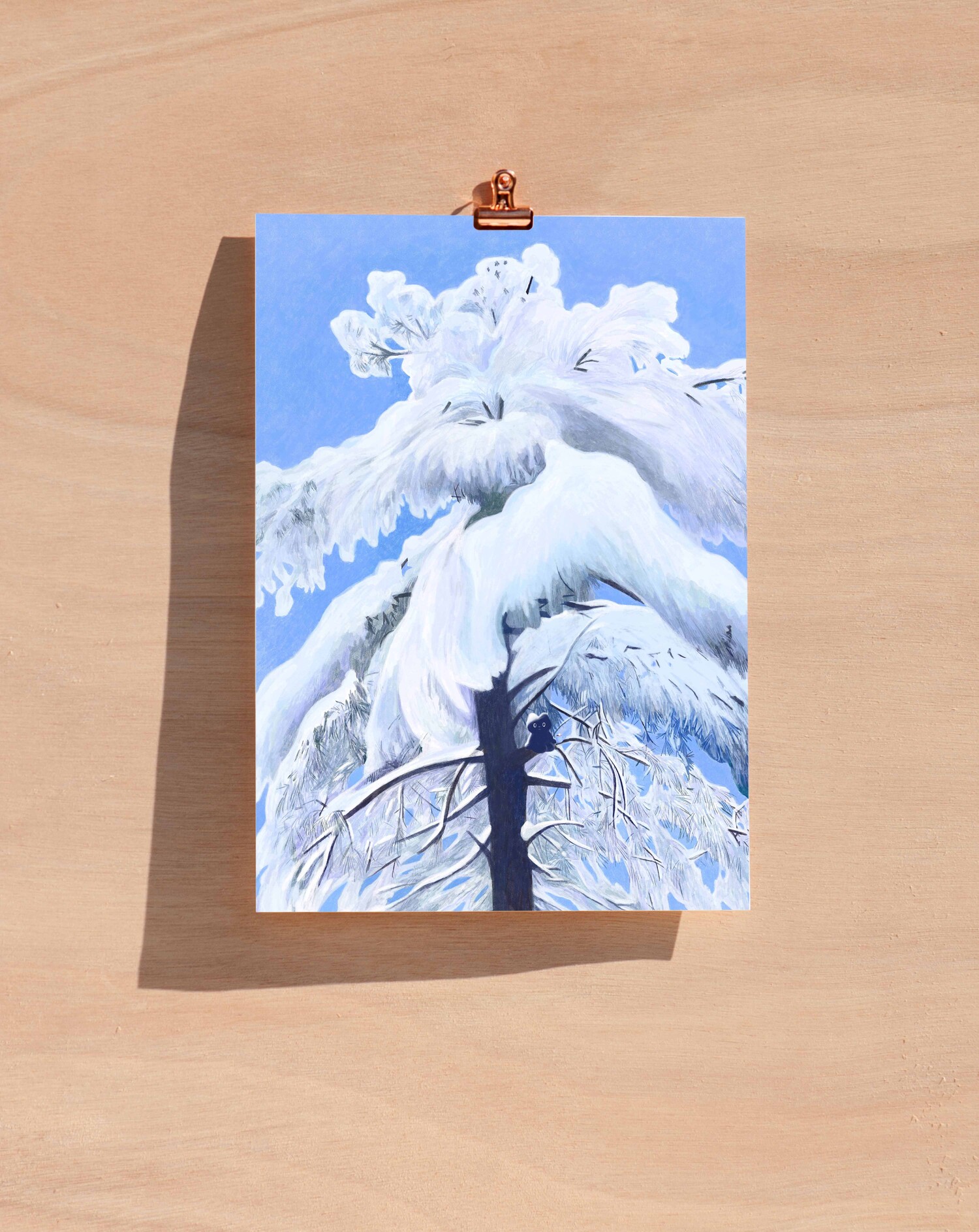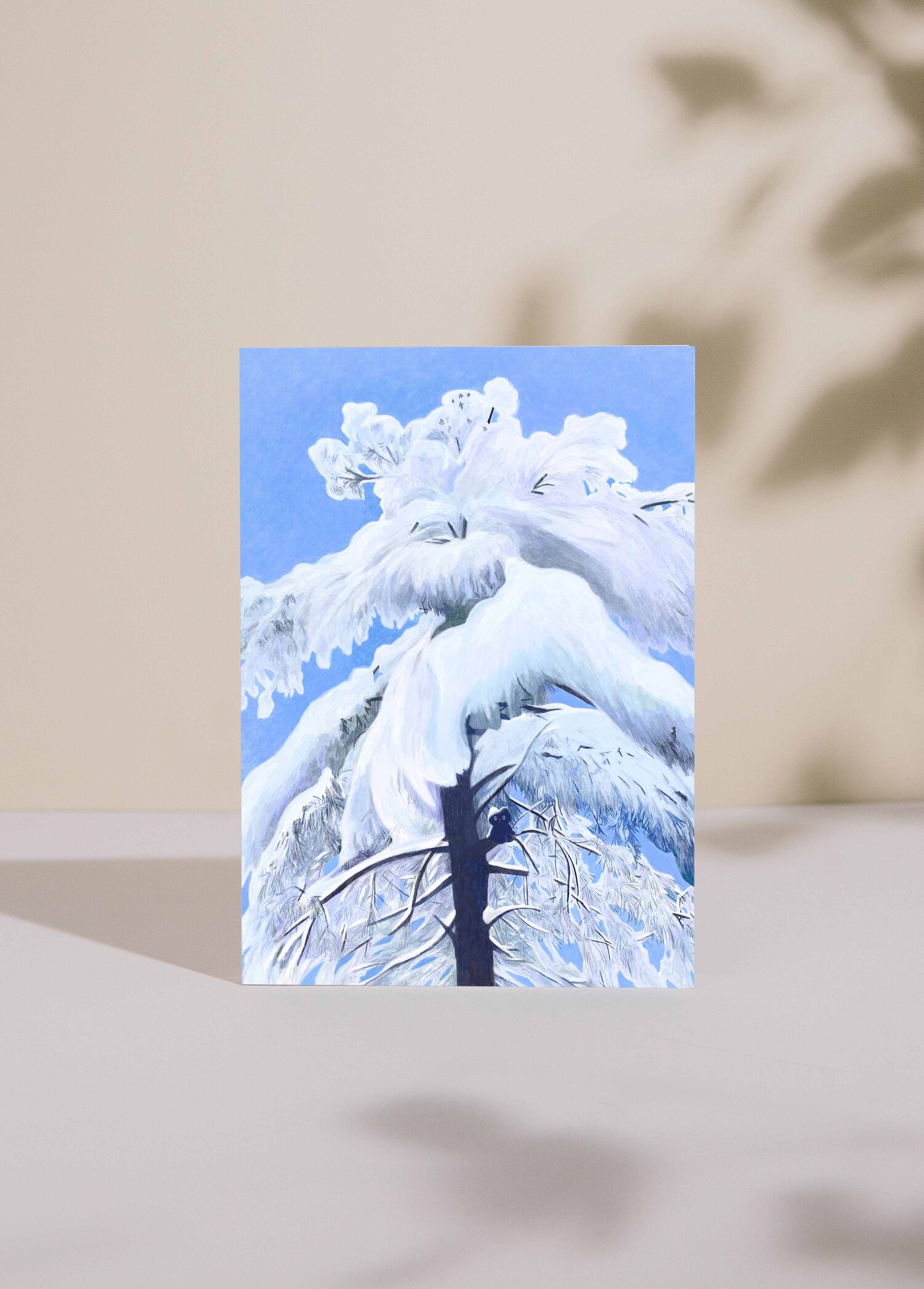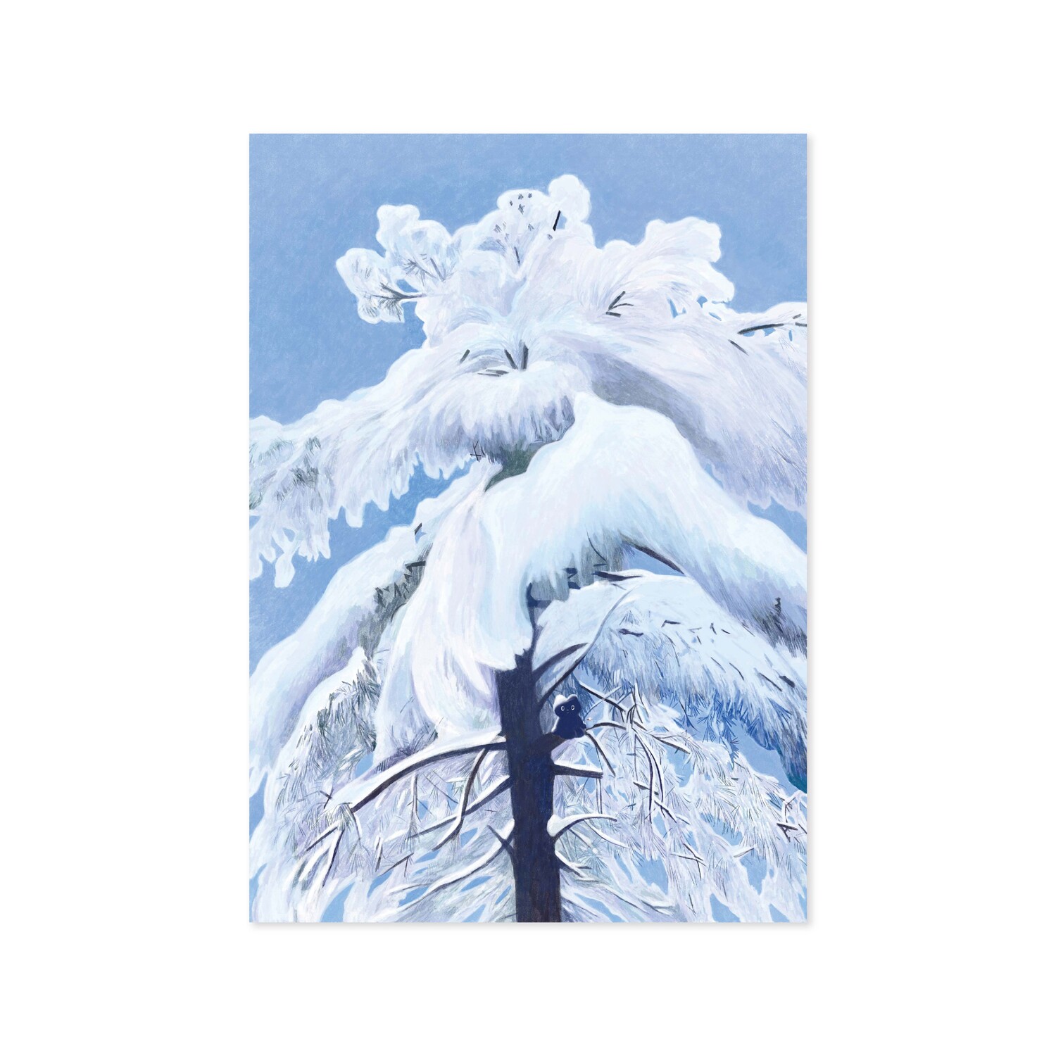 눈이 소복하게 쌓인 설경을 담은 그림 "SNOW ON TREE" 아트 엽서입니다.