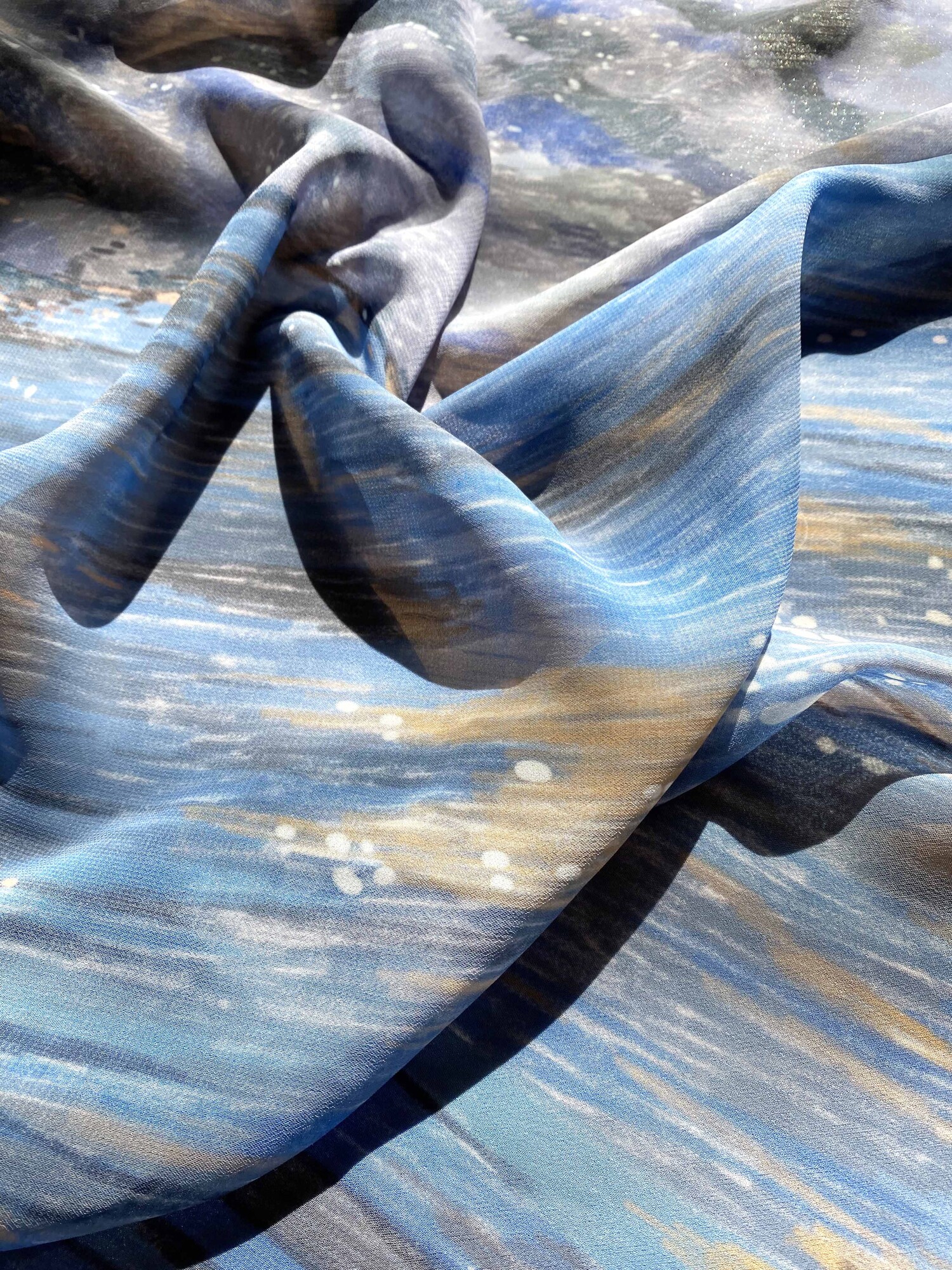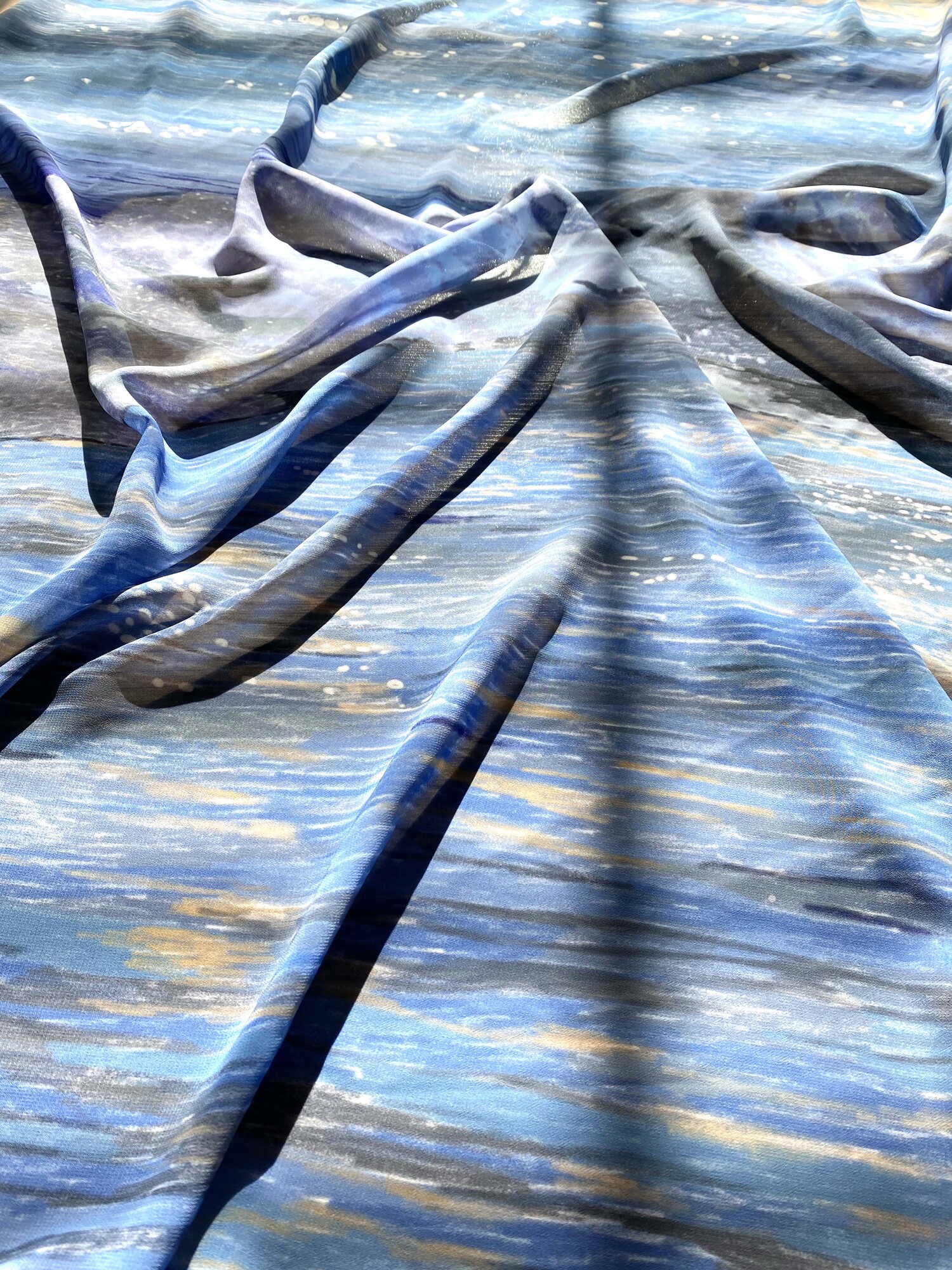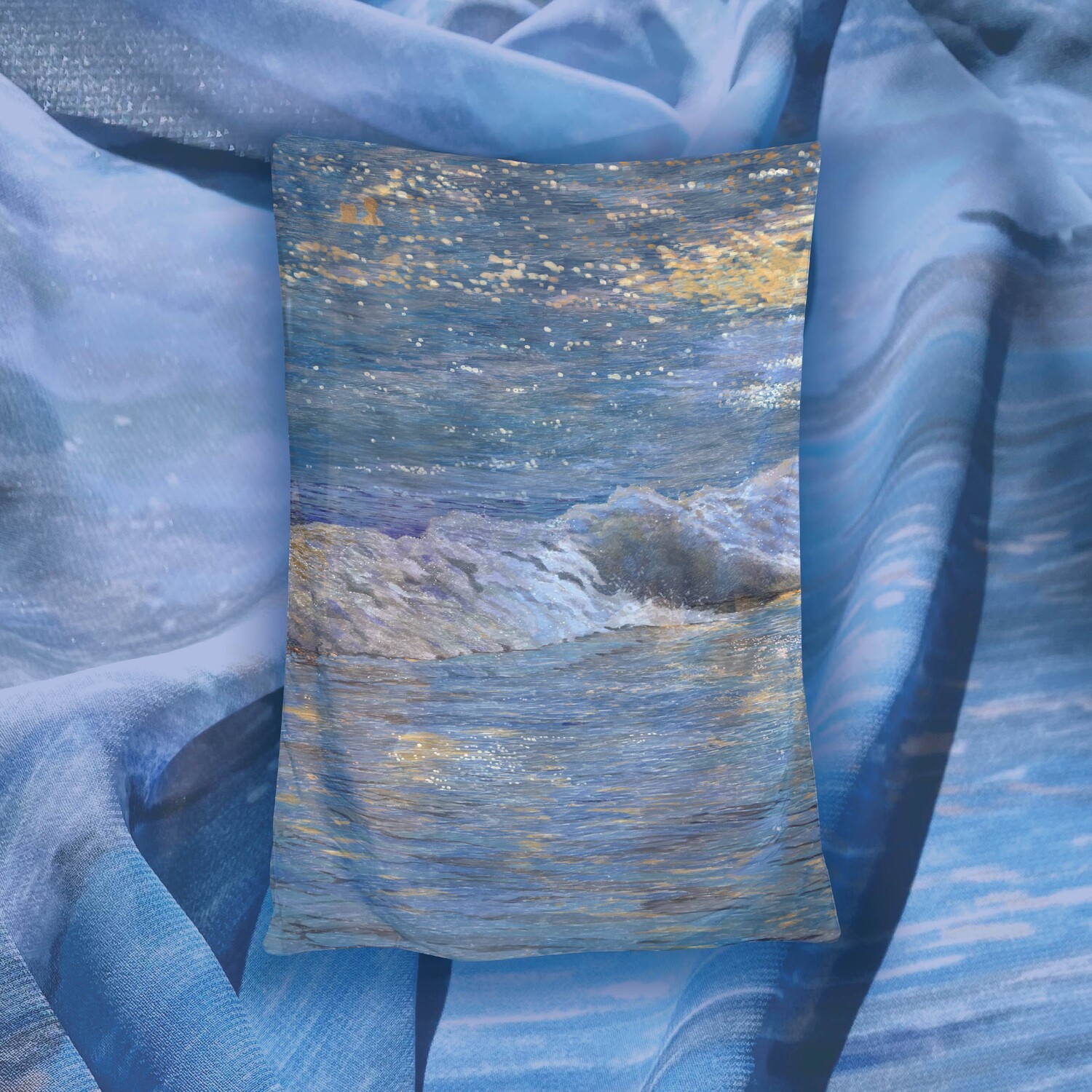 부서지는 파도와 물결에 반사되는 빛을 표현한 차일디시 블루의 그림 "OCEAN WAVE" 쉬폰 패브릭 포스터 입니다.