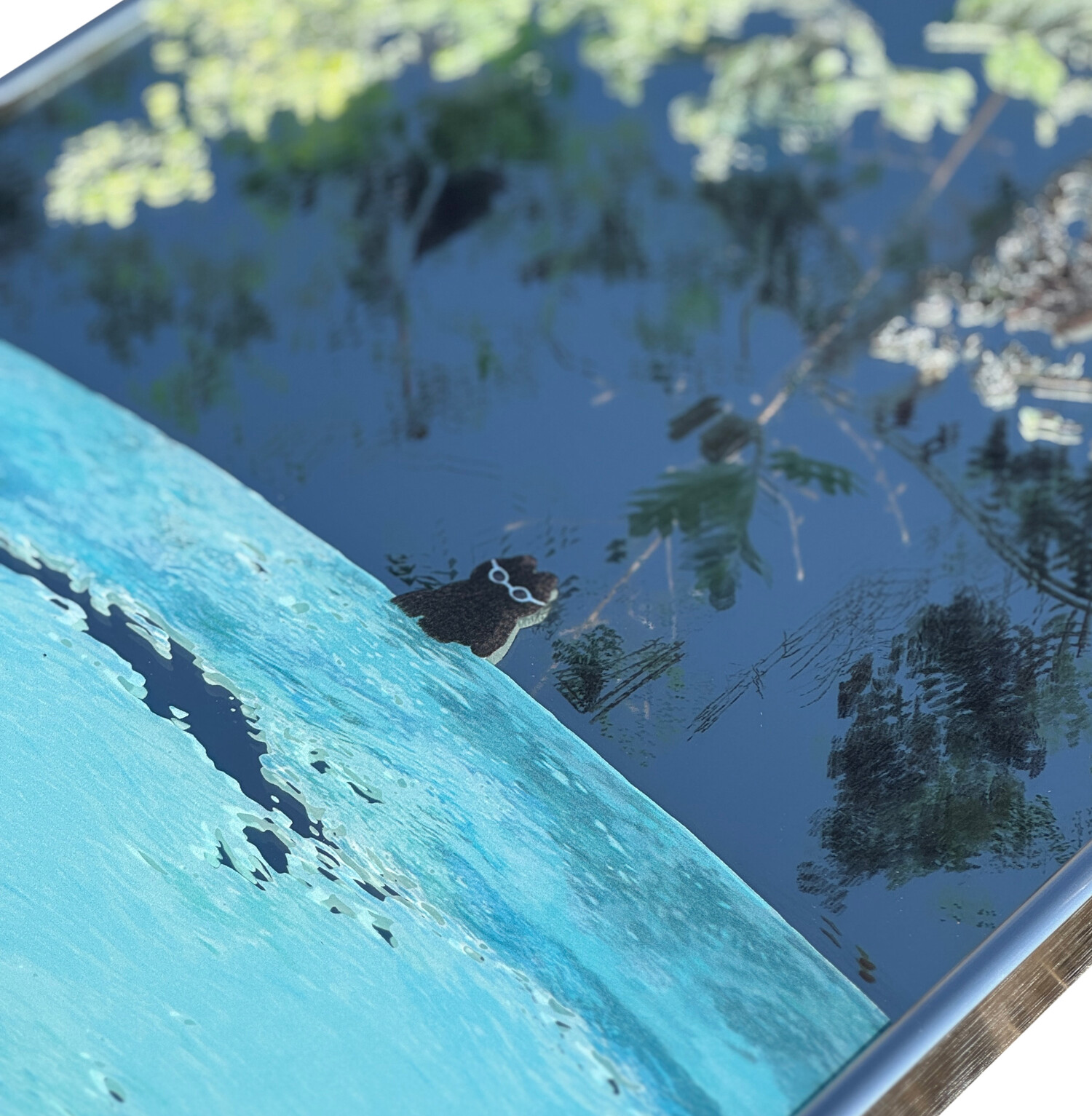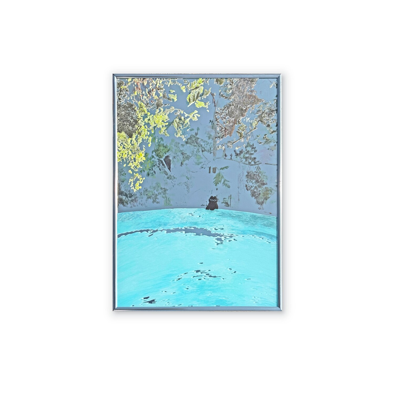 "Swim in Bali" 그림이 인쇄된 거울 작품입니다.