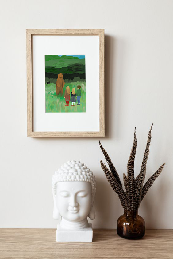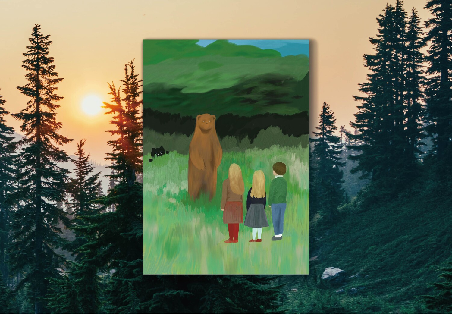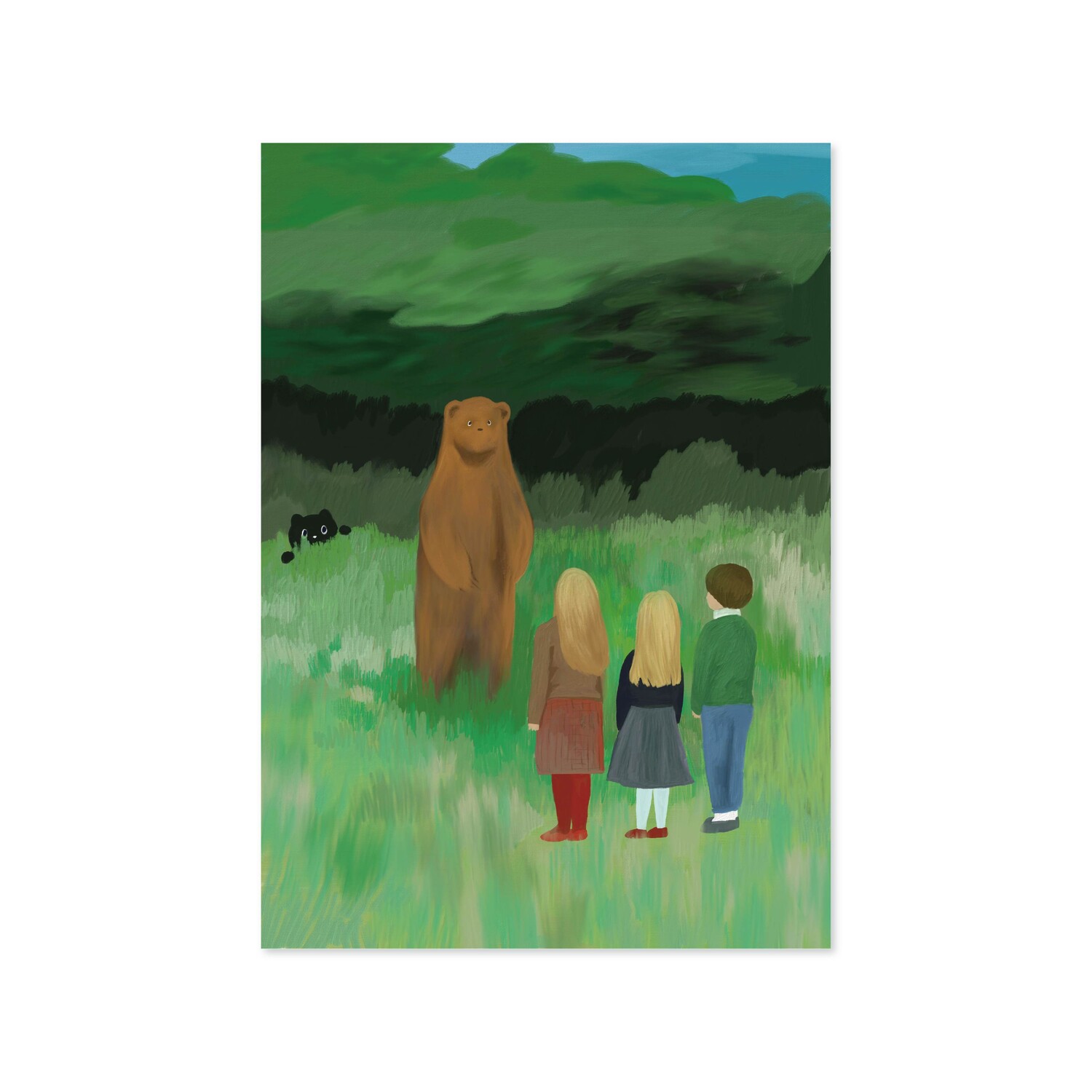 산속에서 곰을 만난 얼어버린 아이들과 뒤에서 지켜보는 꼬미가 인상적인 작품입니다.