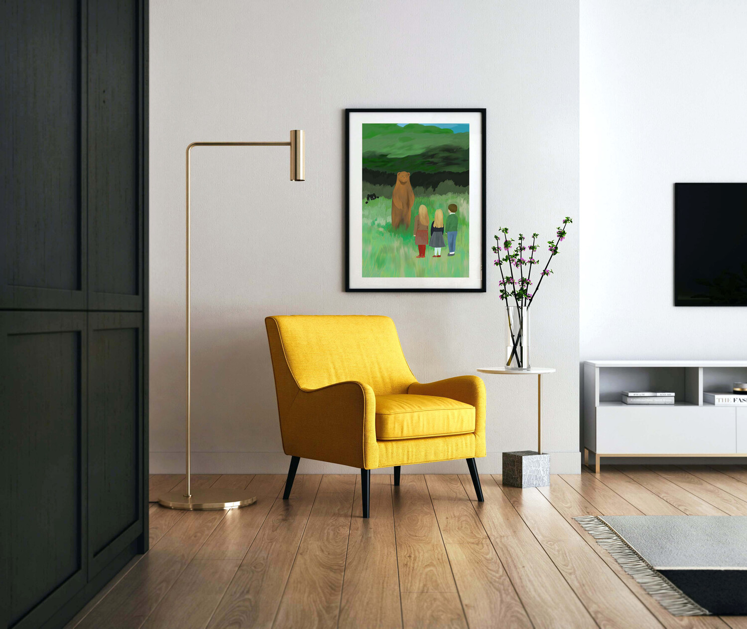 동화적인 느낌의 차일디시 블루의 그림 "MOUNTAIN BEAR" 포스터 입니다.