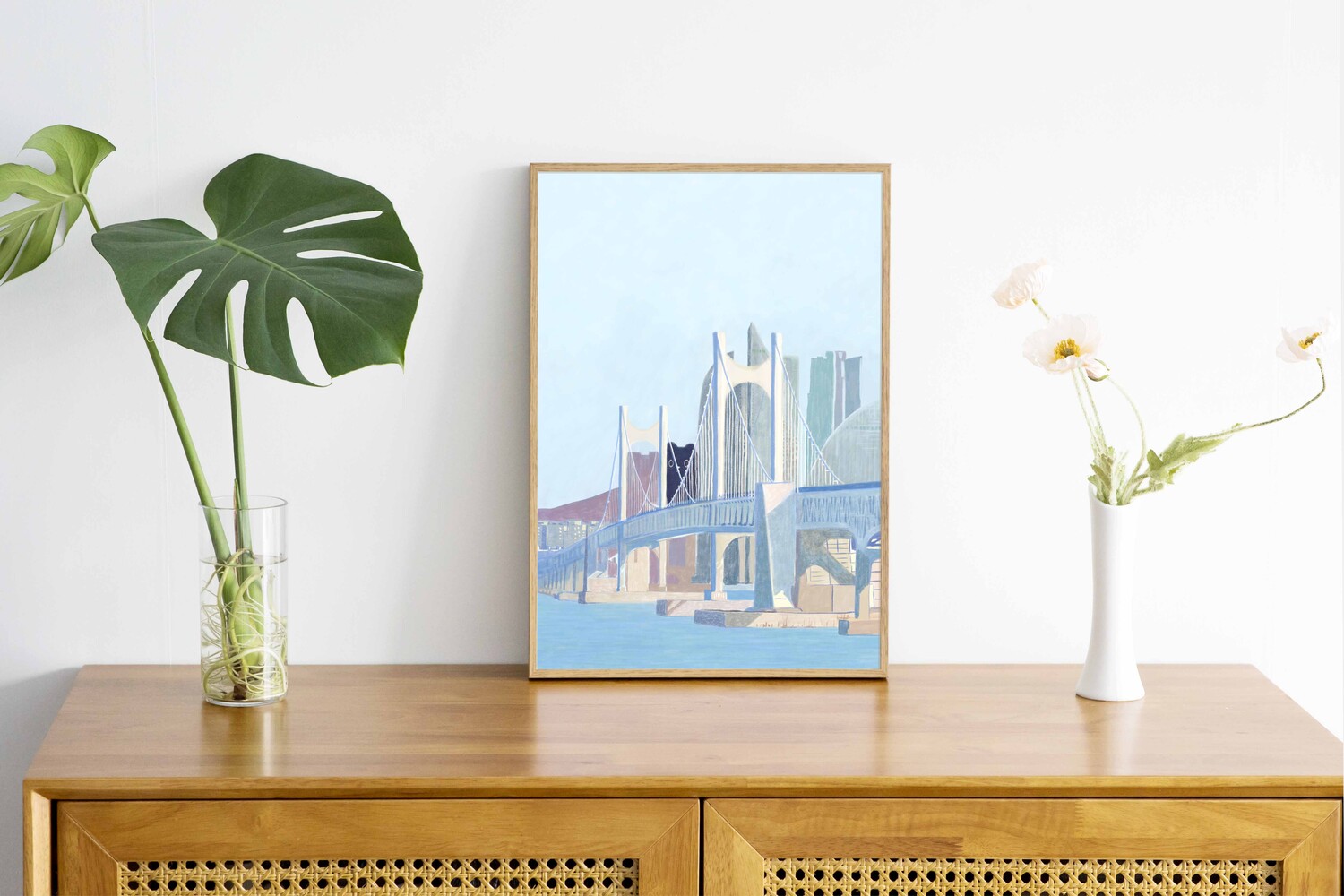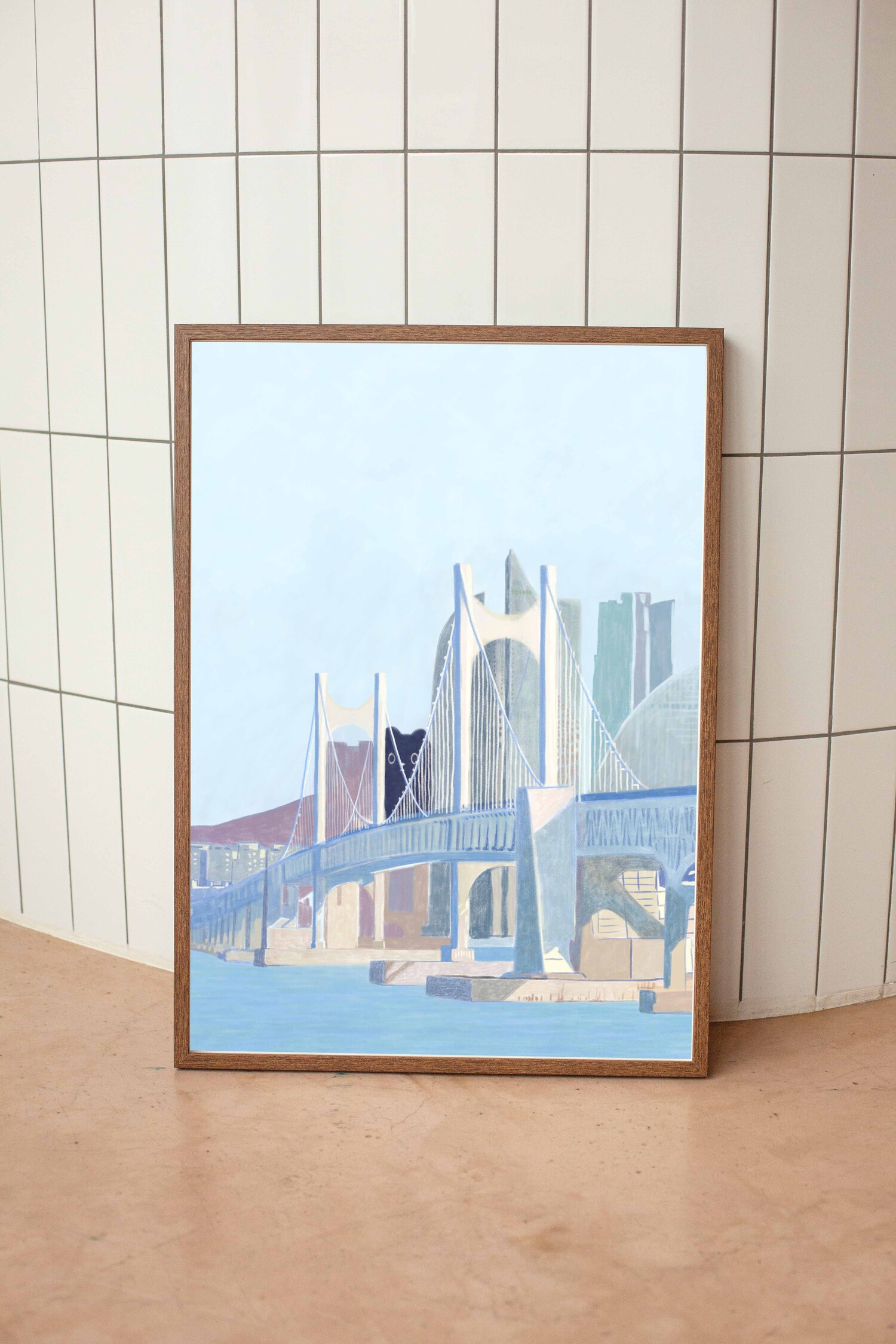 부산의 아름다운 광안대교를 담은 그림 "BUSAN" 아트 포스터입니다.