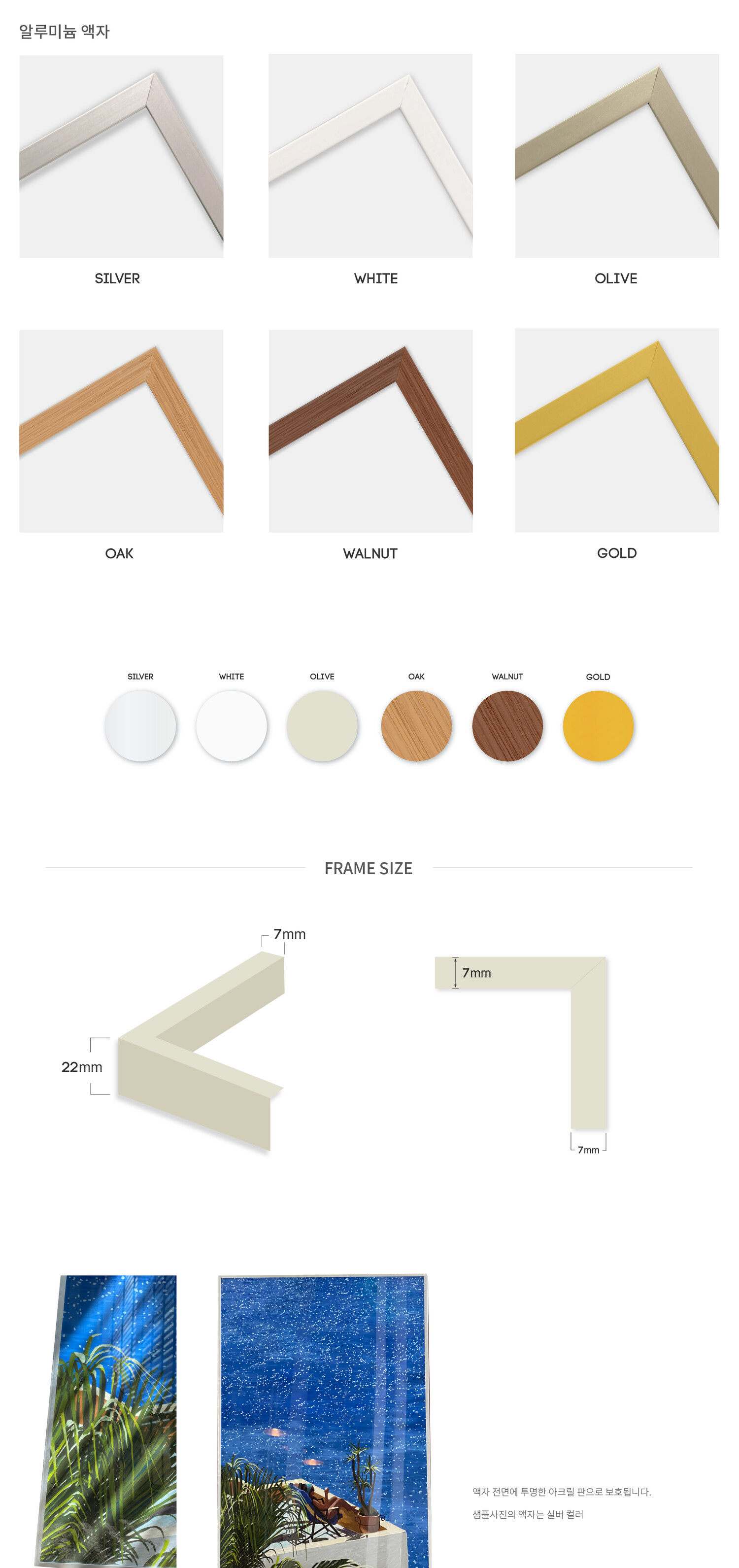 * 액자는 알루미늄 액자이며 액자 선택시 주문제작으로 최대 7일 소요됩니다. (주말제외)