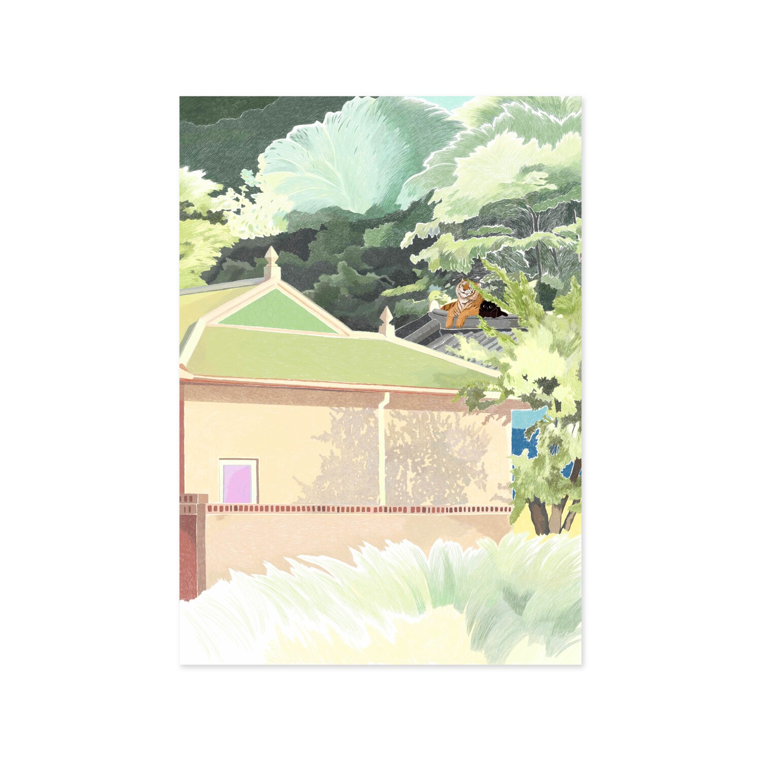 강릉의 어느 풍경을 담은 그림 "HOUSE IN GREEN" 녹색 집이 있는 숲 풍경 엽서입니다.