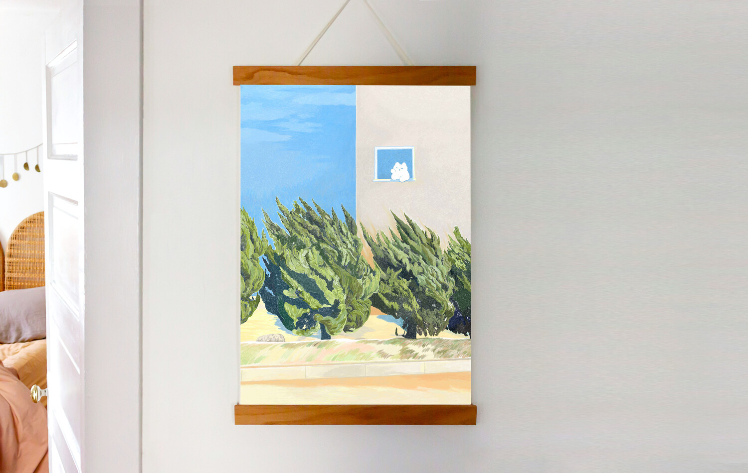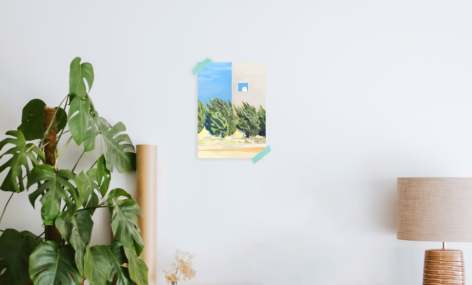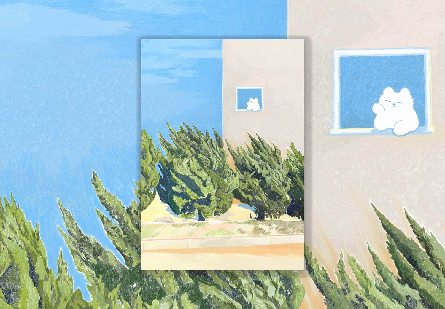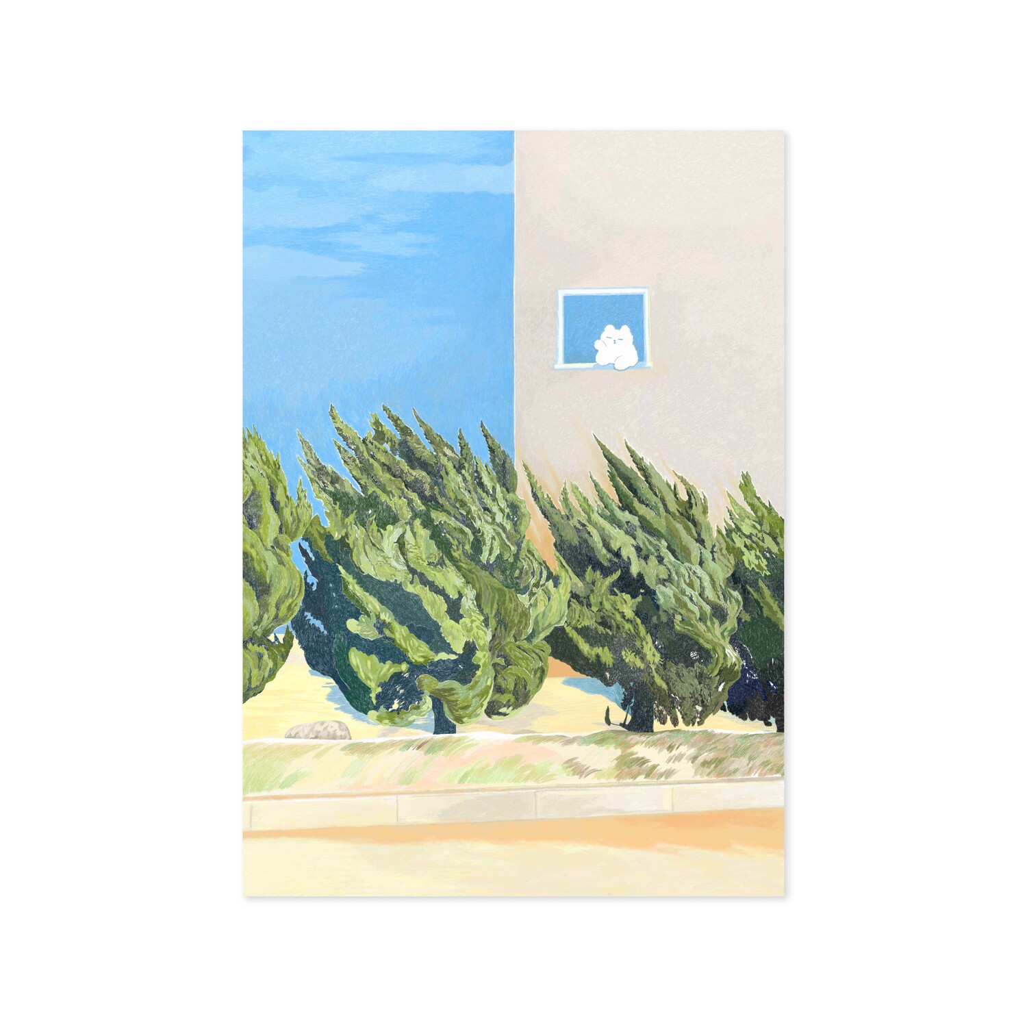 나무가 있는 강릉의 풍경을 담은 그림 "SLANTED TREES" 엽서입니다.